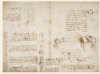 Les petits livres accrochés à sa ceinture et les grands feuillets qu’il conserve dans son studio constituent un catalogue de ses nombreuses passions et obsessions, souvent amalgamées sur le papier. Ingénieur, Léonard affûte ses compétences techniques en dessinant des mécanismes qu’il observe ou invente. Artiste, il ébauche ses concepts et esquisse des études préparatoires. Imprésario de la cour, il gribouille des idées de costumes, de dispositifs de changement de scène et de décor, de fables à mettre en scène et de tirades spirituelles à interpréter. Dans les marges, on retrouve des listes de choses à faire, des relevés de dépenses et des croquis de personnes ayant un instant attiré l’attention de Léonard et stimulé son imagination. Avec les années, ses études scientifiques se font plus sérieuses. Il remplit des pages d’abrégés et de passages qu’il compte intégrer dans divers traités sur le vol, l’eau, l’anatomie, l’art, les chevaux, la mécanique ou la géologie. Presque tout y est, informations personnelles et révélations intimes exceptées. Ce ne sont pas les Confessions de saint Augustin, mais plutôt la manifestation écrite de l’enthousiasme d’un explorateur curieux et insatiable.