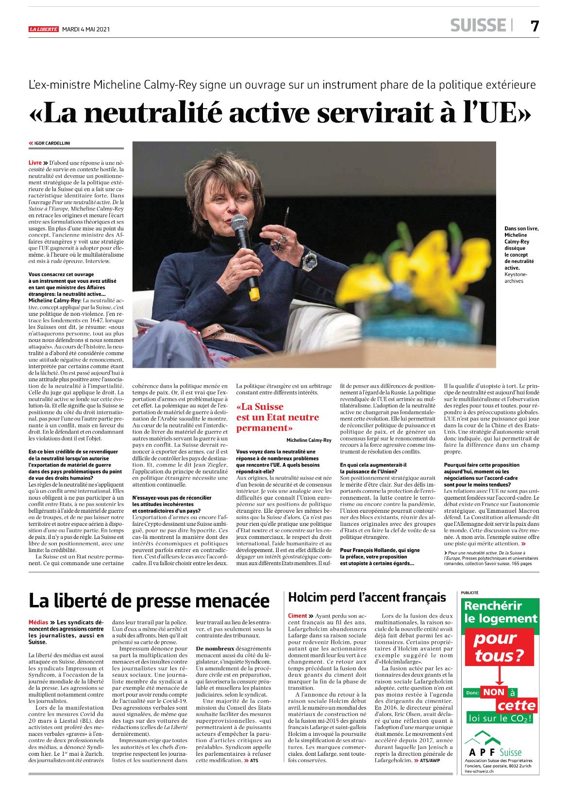 Fidèle à sa tradition de bons offices, la Suisse a accueilli la semaine dernière le sommet entre Joe Biden et Vladimir Poutine dans la ville de Genève, bouclée sous haute sécurité. Comment la Suisse parvient-elle à établir des ponts là où d’autres acteurs sont bloqués ? La neutralité suisse peut-elle être une source d’inspiration pour l’Europe notamment en matière de politique étrangère ? Forte de son expérience de conseillère fédérale, ministre des Affaires étrangères (2003-2011) et de présidente de la Confédération helvétique (2007 et 2011), Micheline Calmy-Rey explique comment le positionnement de la Suisse a pu s’imposer aux yeux du monde dans son essai "Pour une neutralité active. De la Suisse à l’Europe"