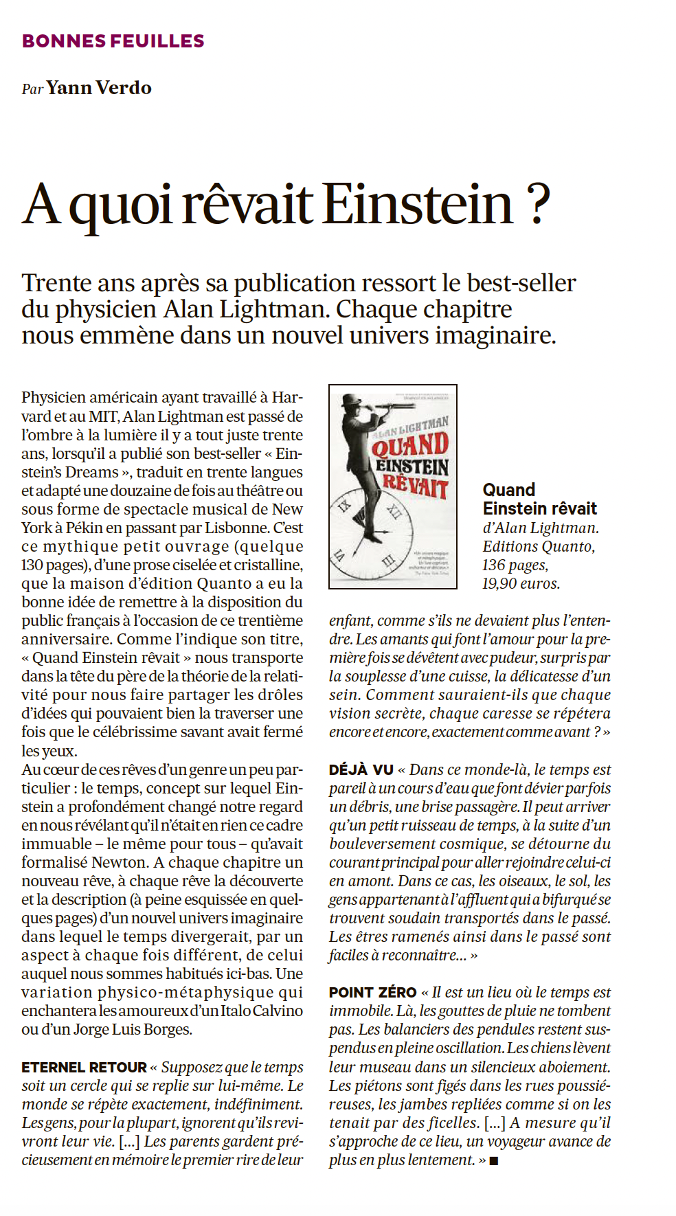 Non, l’écoulement du temps n’est pas aussi régulier que le tic-tac de nos horloges. Et si Einstein, qui a mis le constat en équations, en avait d’abord rêvé? C’est l’argument d’un savoureux petit livre à succès, qui vient de ressortir en français.